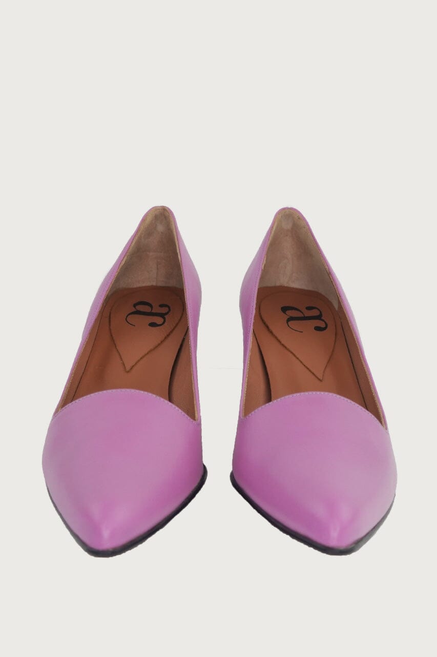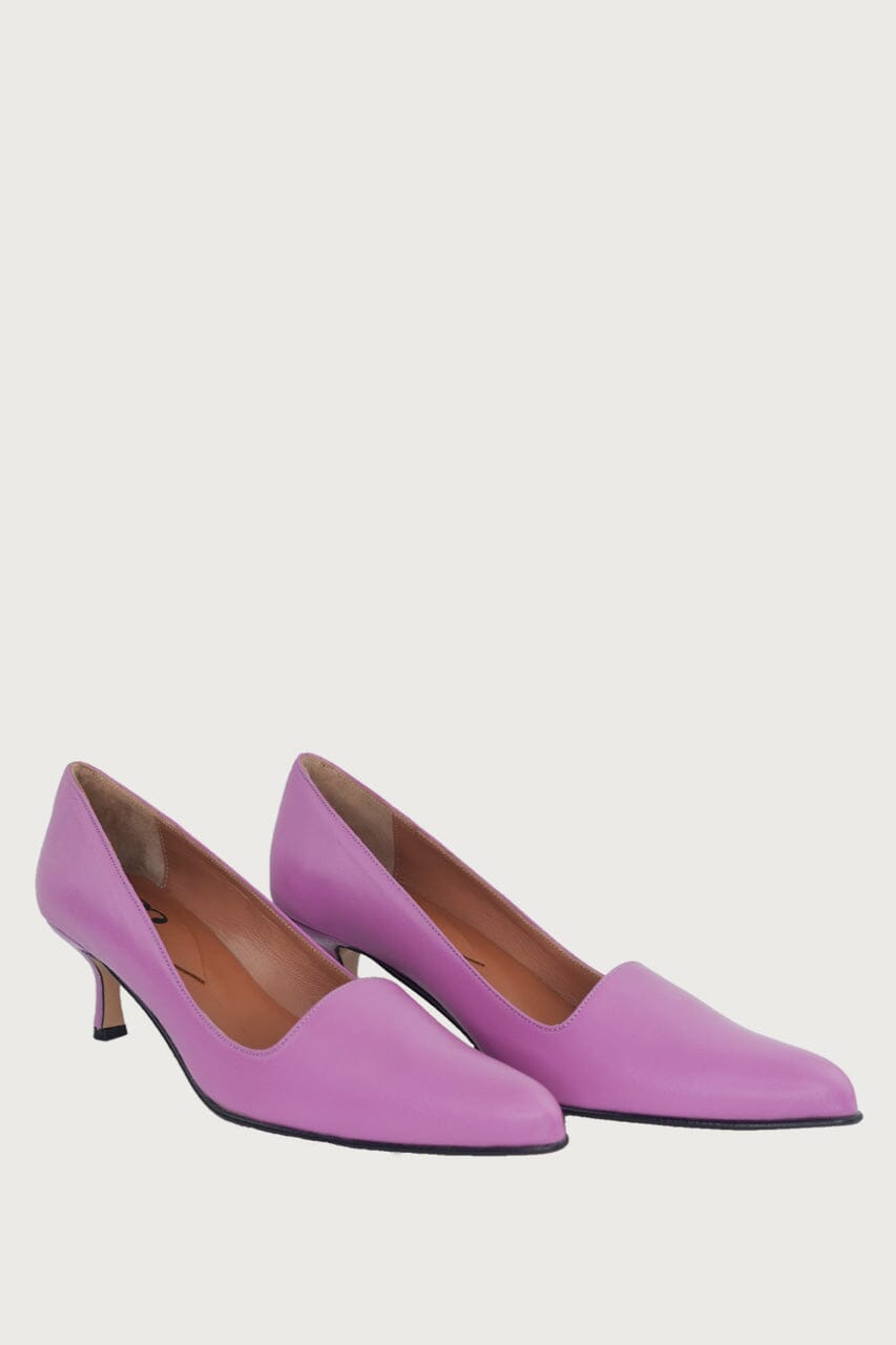 A squared-off top line adds a cool contemporary twist to the silhouette of this timeless leather pump perched on a dainty kitten heel.